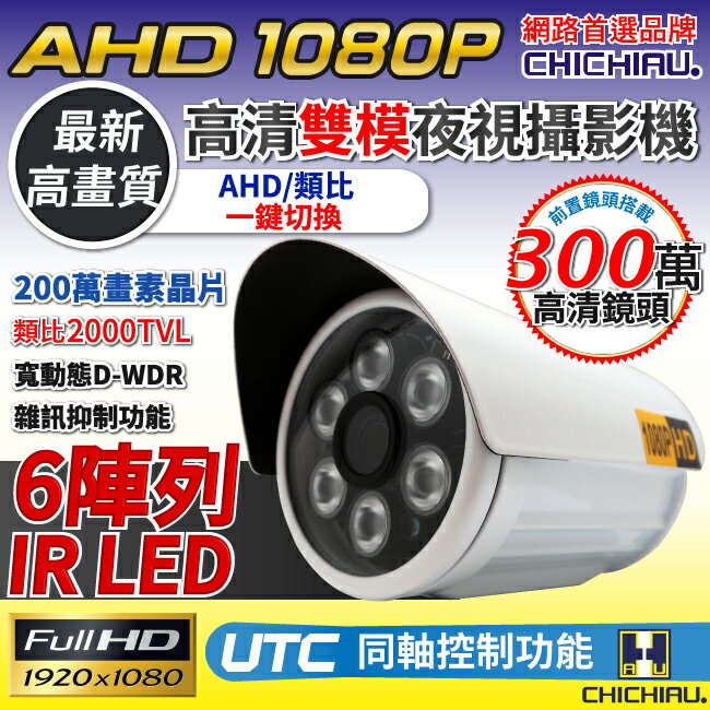 【CHICHIAU】AHD 1080P 200萬畫素2000TVL(類比2000條解析度)雙模切換6陣列燈監視器攝影機