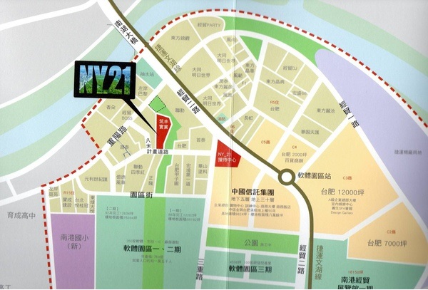 該案位於三重路巷內、緊鄰經貿園區重劃區旁,巷口即為捷運軟體園區站,隸屬R13的都更區域內,周邊已有多處工地施工中或進行都更流程,雖然目前環境略為老舊、凌亂,但未來區域更新可期。該案專案經理邱遵源表示:「基地緊鄰600米的綠軸線上,可步行直達南港路,拉近社區與自然的結合。」