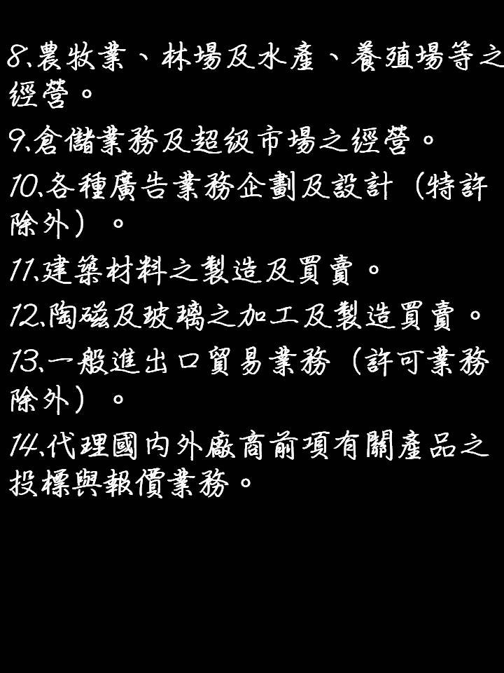14.代理國內外廠商前項有關產品之投標與報價業務。