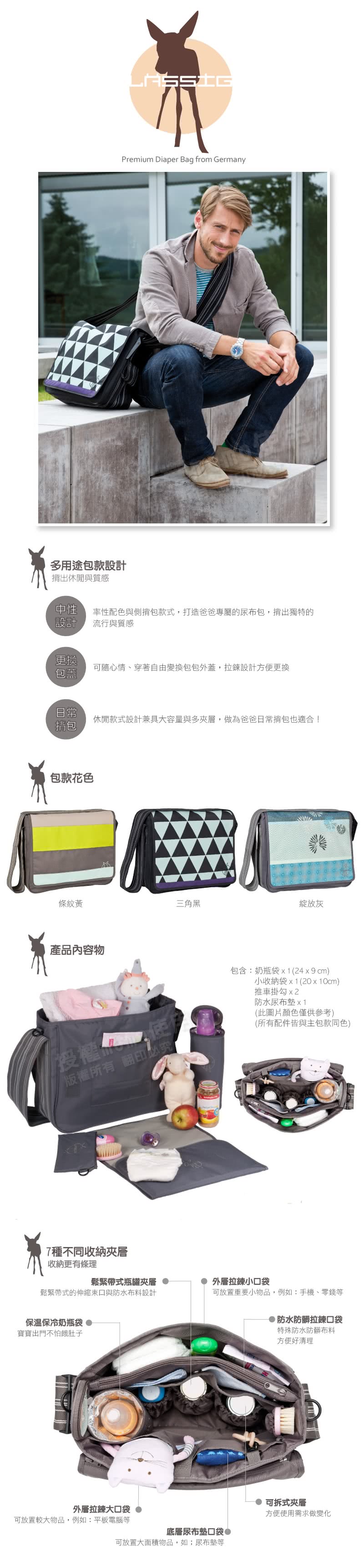 雙11特惠活動,搶到賺到:【Lassig】休閒斜揹郵差爸媽包-三角黑