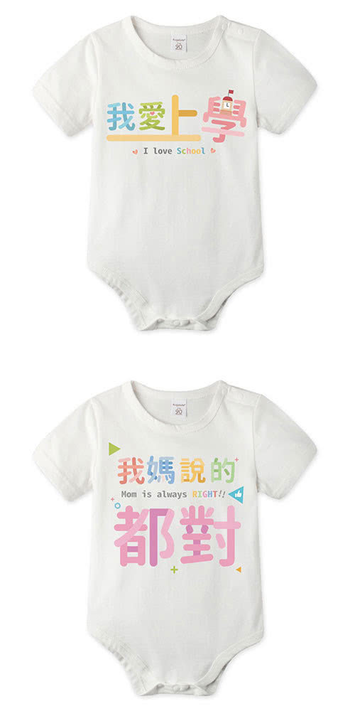 雙11特惠活動,搶到賺到:【Baby童衣】任選 獨家趣味文字印花 純棉短袖包屁衣-白色 66217(我媽超正)
