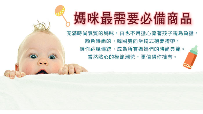 網路價格隨時會調整,請以原網購平台資料為準!我有去遍尋各大購物網站momo購物、yahoo奇摩購物、博客來、PChome線上購物、ibon mart搜尋優惠價格!網路購物EC是擋不住的趨勢,可以方便比價只要用功通常都能買到相對便宜的商品!整理了GOOGLE上關於韓國雙向坐椅式抱嬰揹帶搜尋前幾名排序的資料來輔助!整理資訊大致有分享文、開箱文、試用文、評鑑文、推薦文、是否便宜、優缺點等資訊. |