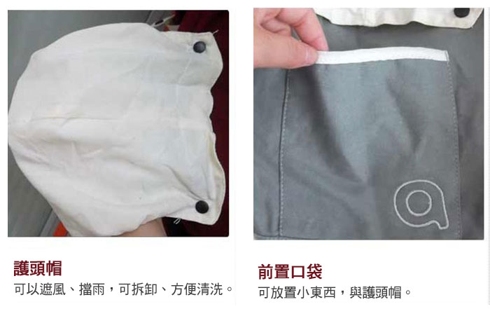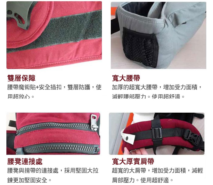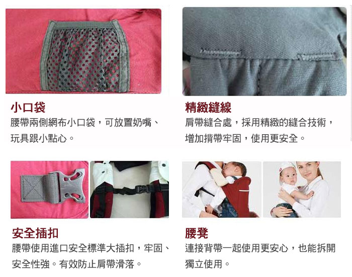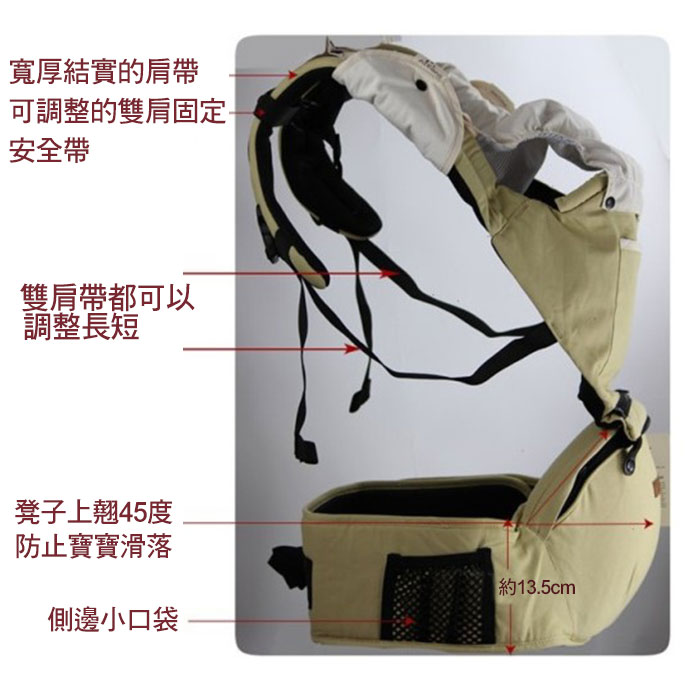 ![]() ![]() ![]() ❤人體工學設計,減輕父母長時間抱著小孩的勞累。 ❤以優質純棉及環保材料製成,舒適無毒性,環保安全。 ❤附有實用小口袋,可放小奶瓶、毛巾、濕紙巾等小物,出門更方便。 ❤設計有可拆式遮陽帽,讓寶寶不必擔心風吹日曬,出門好安心。 ![]() ![]() ![]() ![]() ![]() ![]() ![]() ![]() ![]() ![]() ![]() 商品說明 韓國雙向坐椅式抱嬰揹帶 顏色:米黃/酒紅/咖啡 腰凳填充物:高密度EPS/韓國進口EPP 適用年齡:3~36個月嬰幼兒 ※商品圖檔顏色因電腦螢幕設定差異會略有不同,以實際商品顏色為準。 |