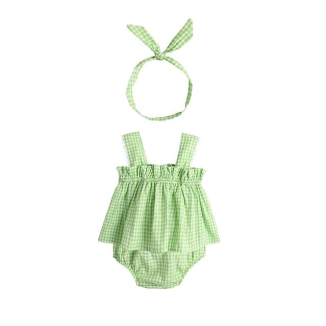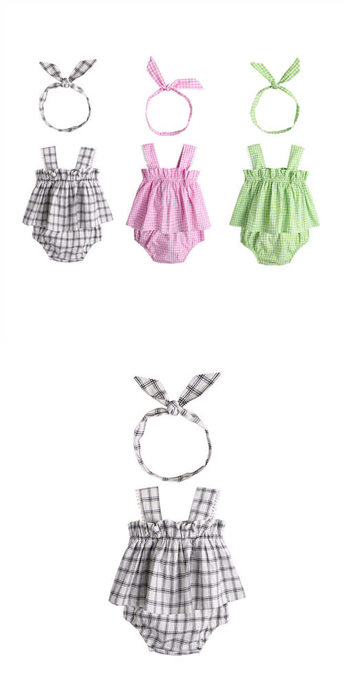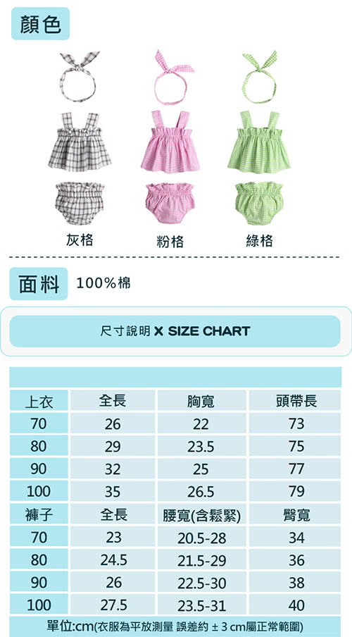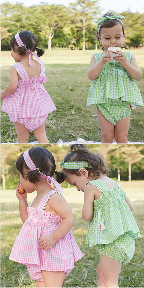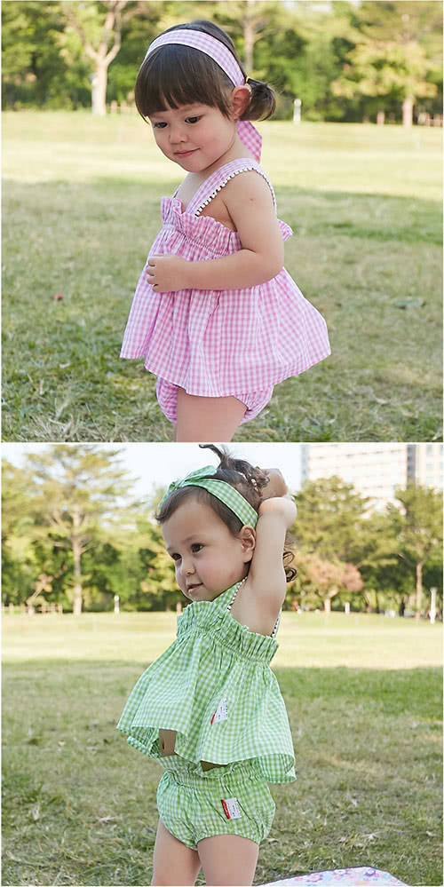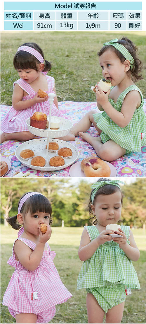 雙11特惠活動,搶到賺到:【Baby童衣】任選 甜美格紋上衣裙+小褲褲 套組 附髮帶 80089(綠格)