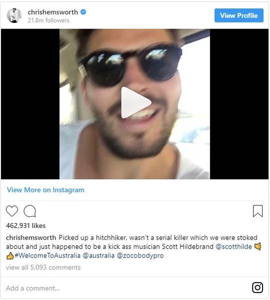最後漢斯沃還買了衝浪板送給史考特,要他好好享受澳洲,更開玩笑「好了!史考特,回去繼續搭便車吧!」而事後史考特接受媒體採訪,大讚漢斯沃人真的很好。整個過程也被漢斯沃上傳到IG上,引來大批粉絲狂喊羨慕,紛紛表示也要去澳洲搭便車,也許又能遇上漢斯沃。
