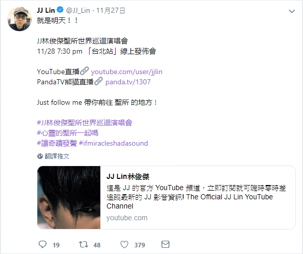 林俊傑前晚宣布將於明年2月在小巨蛋開唱。(JFJ Productions提供) 林俊傑「聖所」世界巡迴演唱會,今年3月起跑後,經歷8個月的巡演,前晚宣布將於明年2月16、17日在台北小巨蛋舉辦亞洲最終...