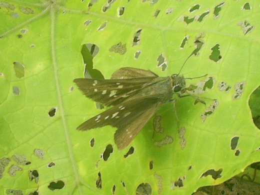 前翅中室附近外橫線部位有數枚白色斑紋,後翅外橫線部