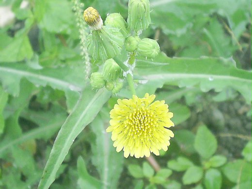 及花序均具有白色乳液,葉不規則羽狀深裂,葉基抱莖,葉背稍