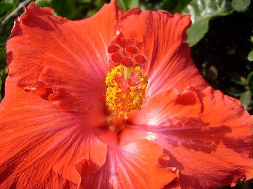 花卉。醉紅扶桑,厚紅波浪圓瓣。