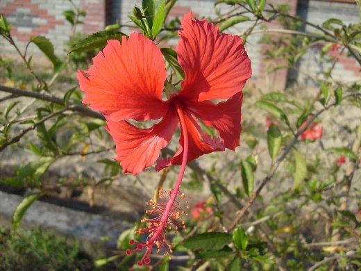 外觀特徵:朱槿(扶桑)品種很多,葉為單葉互生,有鋸齒緣, 全年均