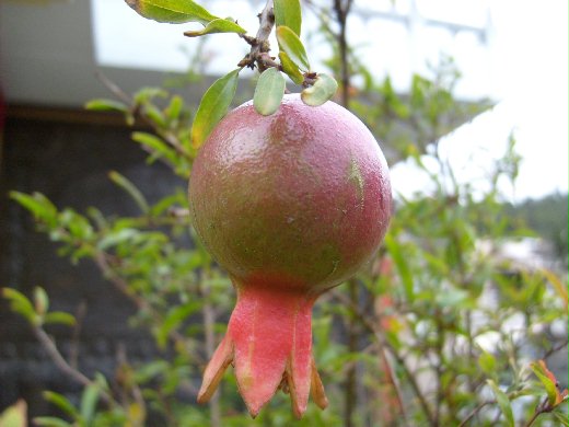 庭園。也有矮種的安石榴,只有30公分高,花著生於枝端