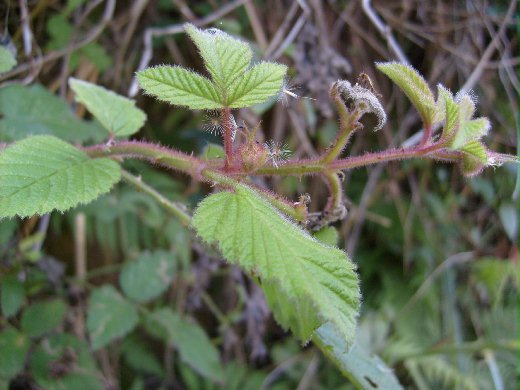 形態特徵 :匍匐性灌木,全株密生許多細小的倒鉤刺,葉互生,為三
