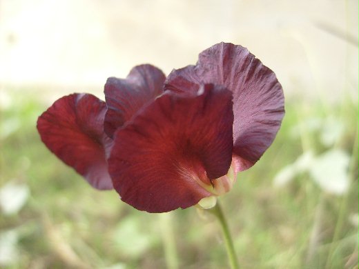 菱形,密生茸毛。腋生總狀花序,花冠蝶形,花色暗紫色,鐘形
