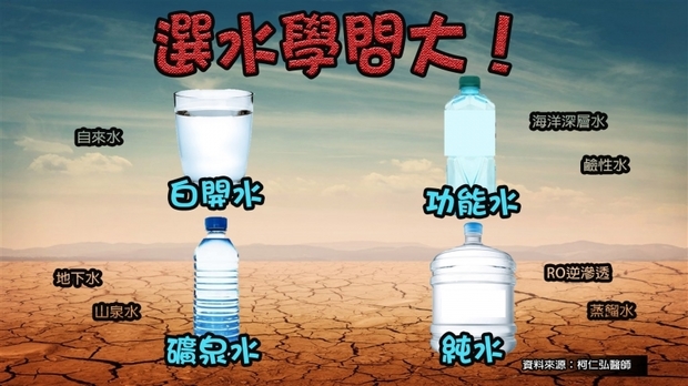 而現在很多號稱具有功能性的水,這些水對人體來說真的有幫助嗎?柯仁弘醫師提到,海洋深層水標榜來自於海底200公尺以下,甚至是300公尺以下的深層海水,由於這個深度陽光無法到達、水溫終年處於穩定低溫,無法行光合作用,因此極純淨而沒有浮游生物,而且海底含有豐富的礦物質及微量元素。這種水在日本還有神水的稱號,除了飲用,還大量用於SPA和醫療上。
