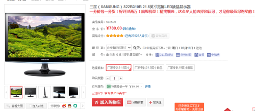 ● 产品型号:(SAMSUNG)S22B310B 21.5英寸宽屏LED液晶显示器 (报价 参数 图片 评论 )