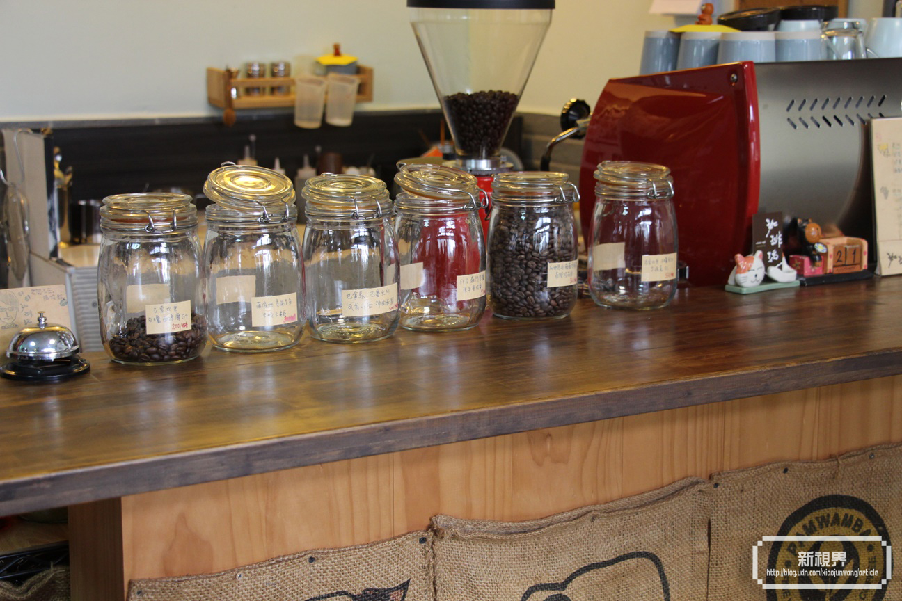 一排裝著各式咖啡豆的罐子,你能夠想像這是在市場裡嗎?