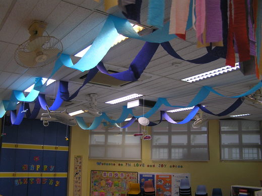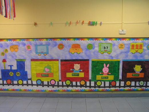 这学期的教学主题是交通工具,所以花了一些时间,为教室打扮一番。