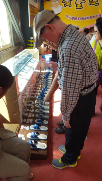 進入黃金歲道前先測量腳丫子,以藍白拖進入,由於隧道裡