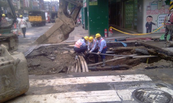 位於萬大路237巷口因水管斷裂造成路基下陷連帶影響水利涵管及各設施管線損壞經各單位搶修目前已修復完成!