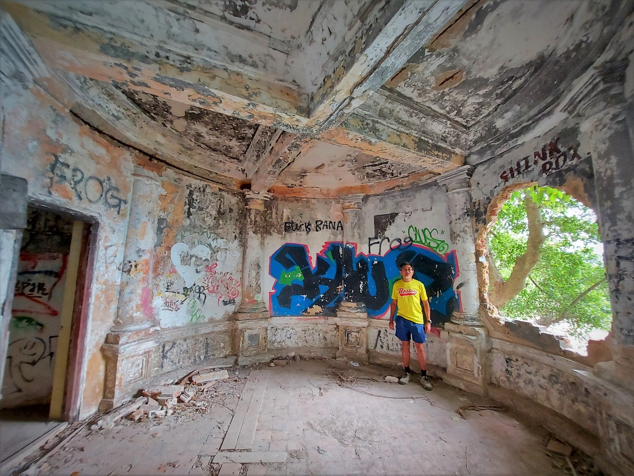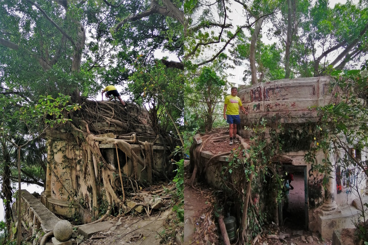 去年拙文吾鄉吾土—庚子版 Hikings in 2020 介紹過胡文虎後山上3個英帝園林式的古亭,2021年往游另一個同樣光怪的構築。位於大潭老牌豪宅Manhattan出面的海濱。面積約30平米有羅馬柱的圓屋,向海方向有一大洞,也不知是牆壁倒塌抑或落地大窗!