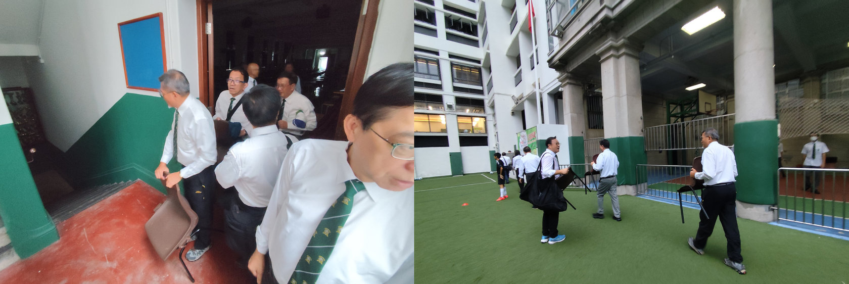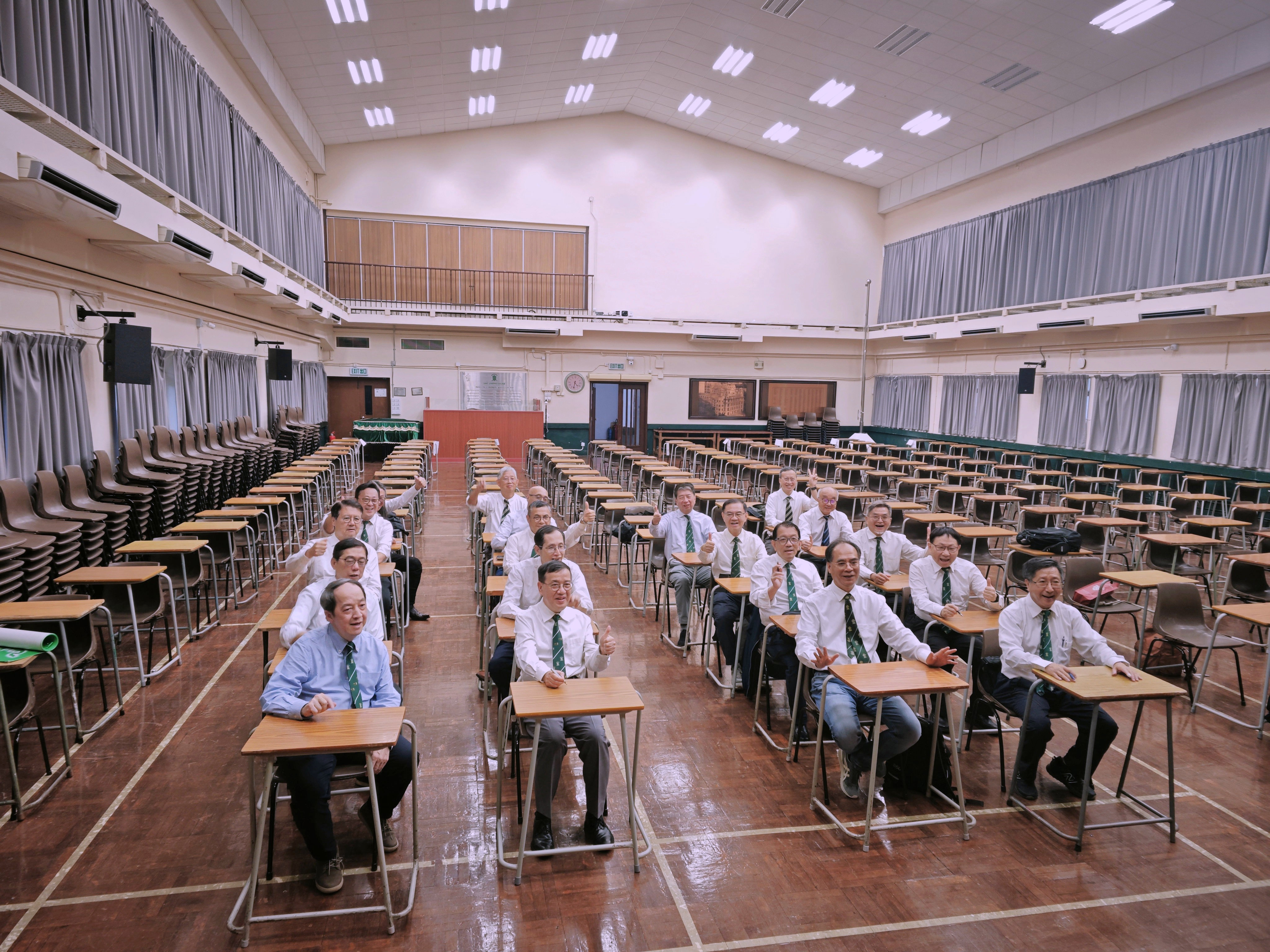 之前數天,透過程校長聯絡學校職員,當日告訴我們可以從Old Hall搬椅子落操場用來拍照。