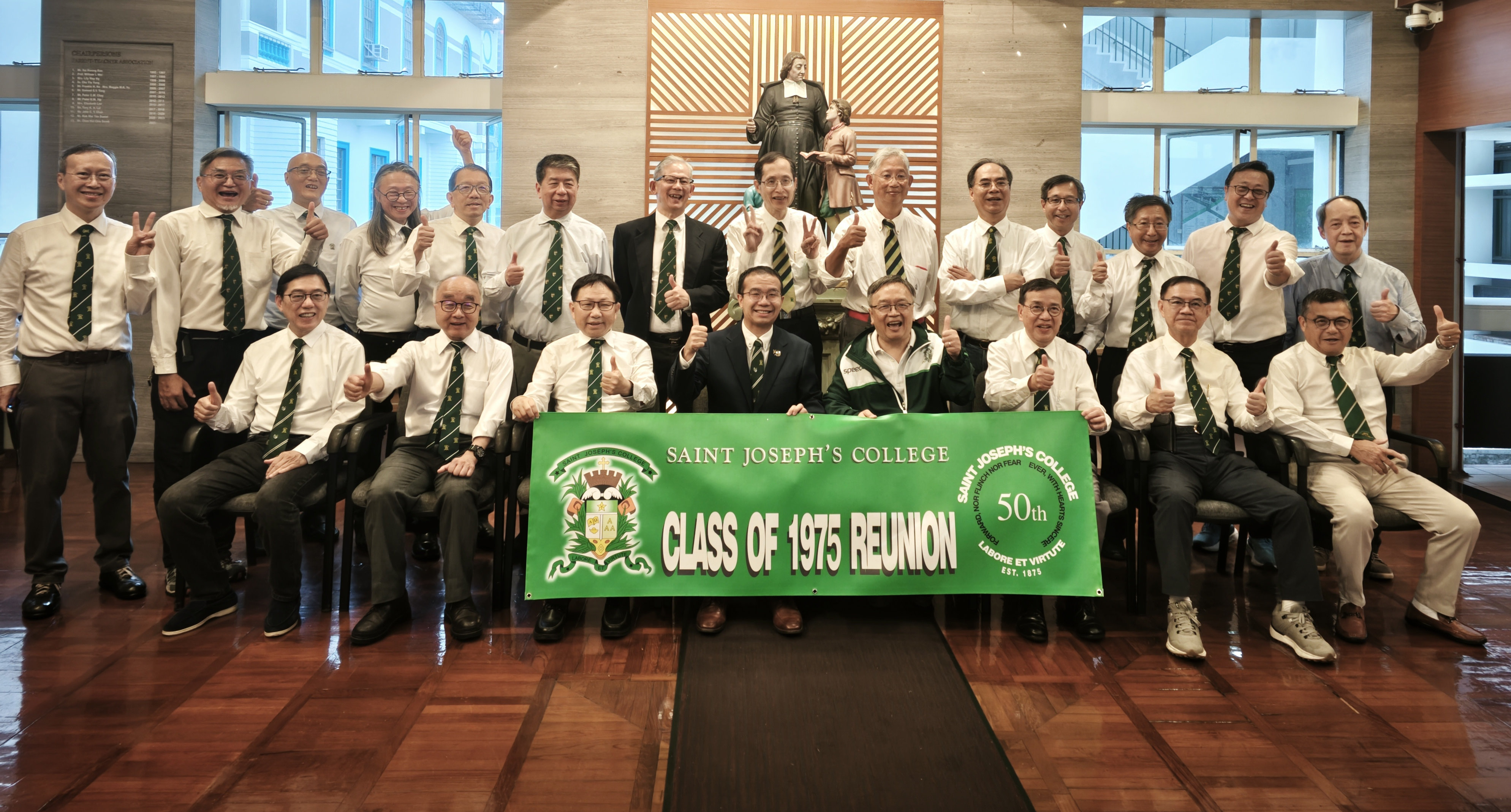 草木遙落,萬籟無聲;時間寒蛩,似斷似續。孰知萬卉凋零之時,獨有植立於風霜之表;經冬而彌茂,「勤勞美德」;乃「若瑟夫」是也。韶光荏苒,中五畢業;轉眼又渡五十寒暑。作為聖若瑟書院之百屆畢業生,喜見同學暮年康健、眾多事業有成,功成身退。遙祝桑榆晚景:𤋮泰怡寧,延年益壽。臨此一百五十週年慶典,𧫴賦七絕兩首以誌。倏忽天涯五十年江湖夜雨一燈懸物序更新催人老隨緣自得空外天憑欄遠眺獨無言童趣依舊似當年豪情未散音猶在鬢白體健心釋然謝謝教授賜詩 zhangWL 於 2025/11/14 17:25回覆
