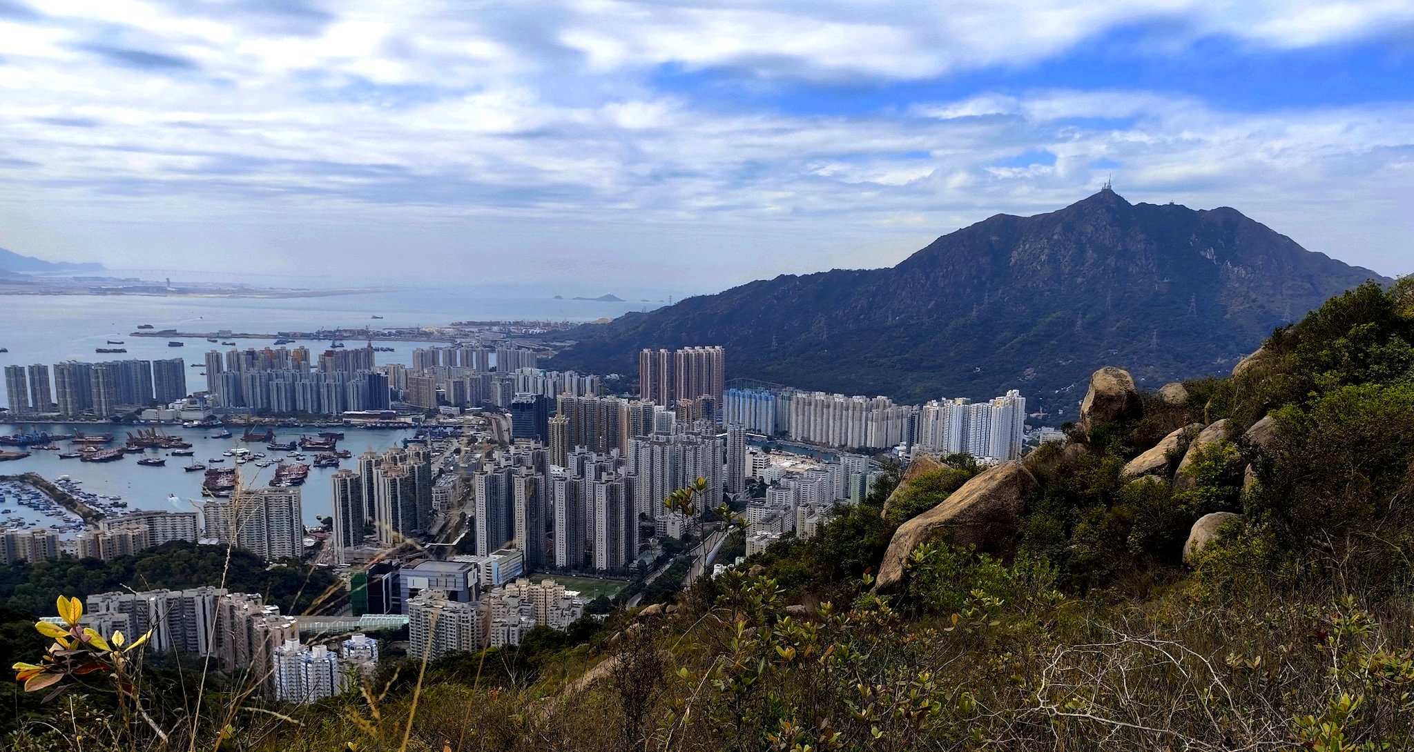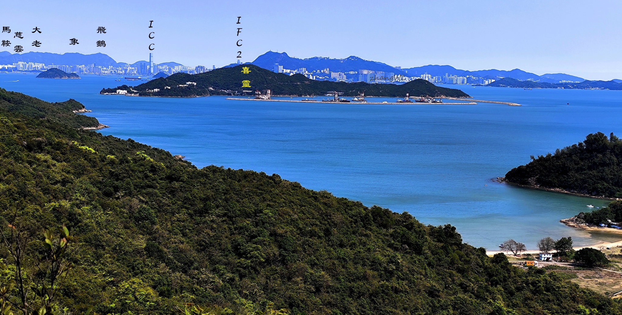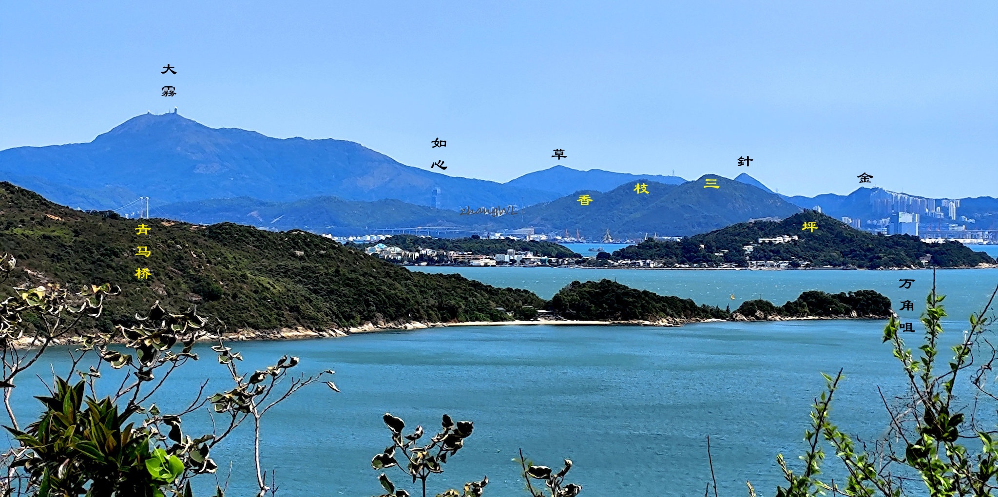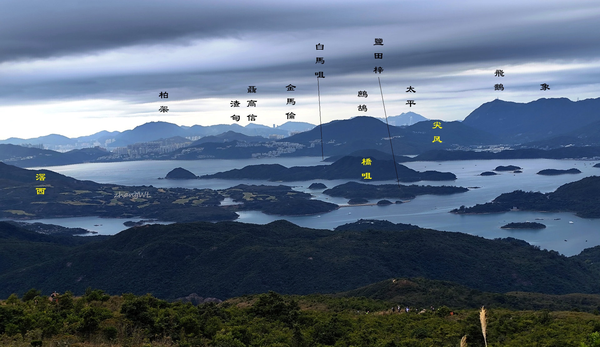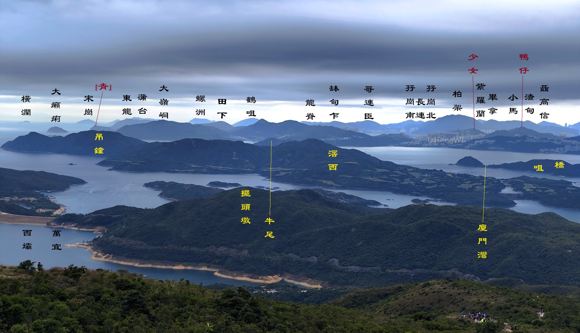 南面看到大嶼山全景。東北可遠眺深圳第一高峰大梧桐(上面在大枕蓋也拍了)。