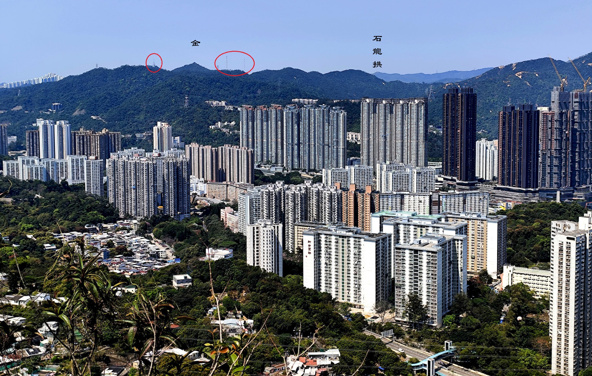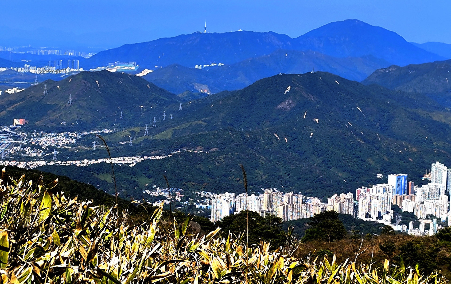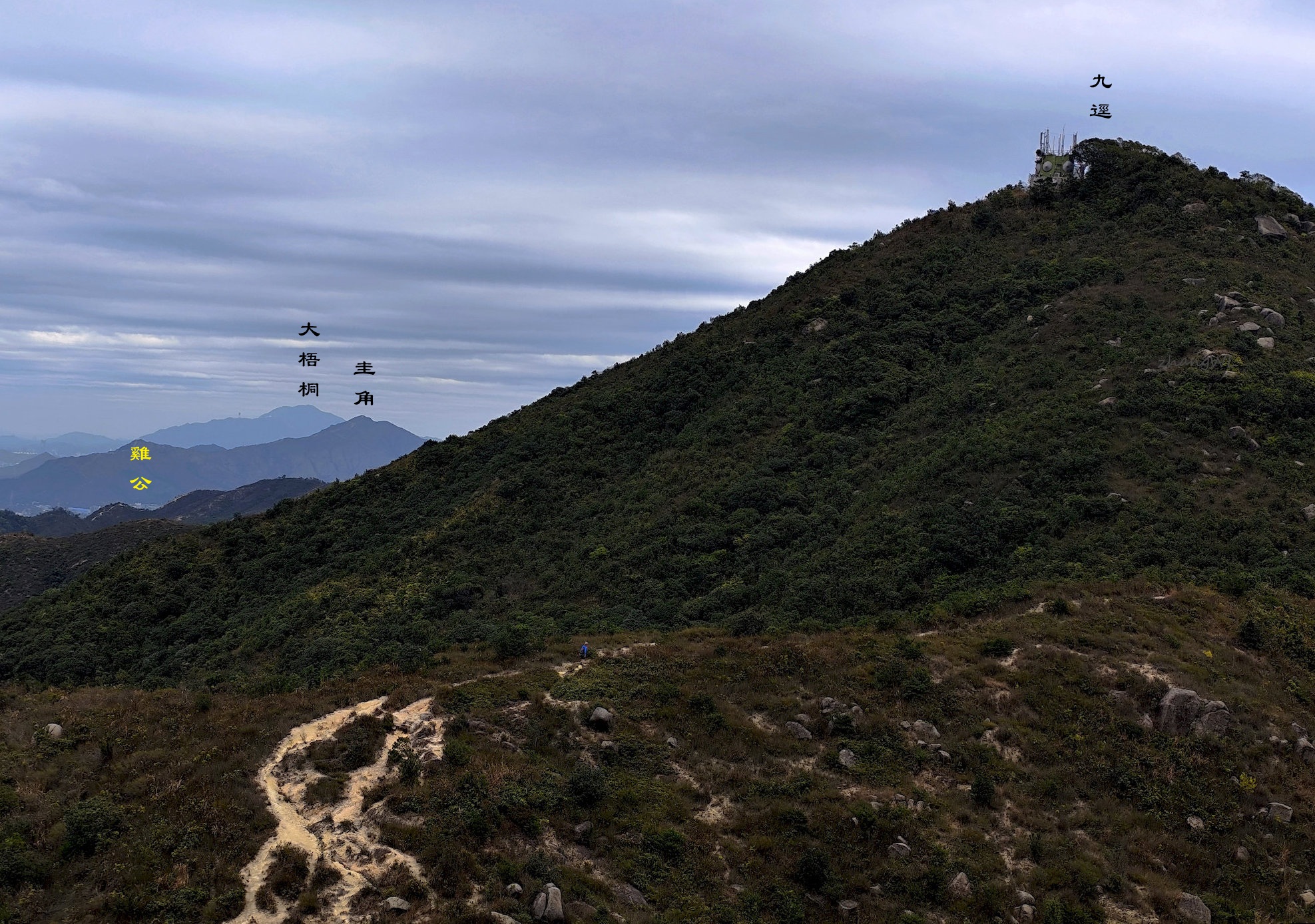 下圖拍於四方山以東之麥徑8段。遠景是大小梧桐,中間是紅花嶺,前景是龍山及九龍坑山。