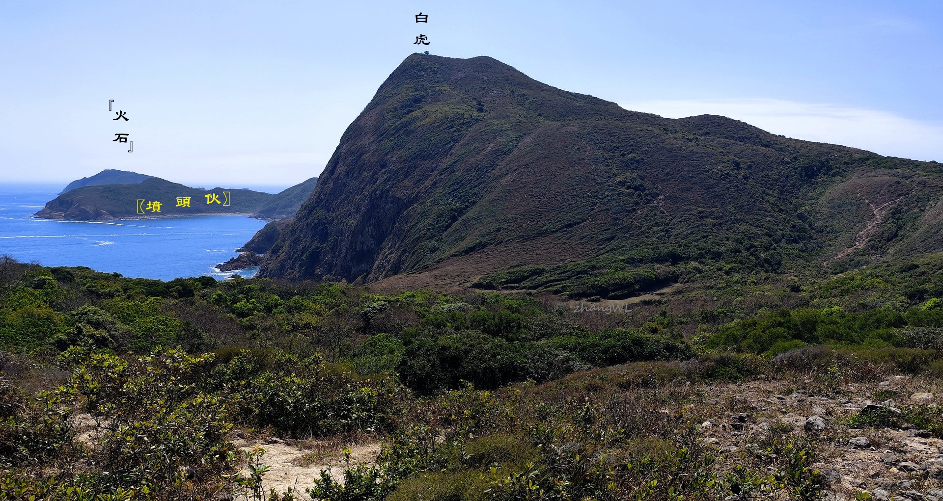 250228 引述當日老朽臉書記載:与朋友沟通有误,以为他想行大蛇湾。他上车才知道原来想去大蛇顶,但已另外约了11/3去。路上商讨,选择了他未上过之白虎山。打的→M015→白腊→不知是否叫阴塱的废村(走向海边)→白虎山顶→阴塱→东丫→北丫→M012。7.3公里,总爬升310m,4.2小时。白虎山顶罋缸群岛尽收眼底。