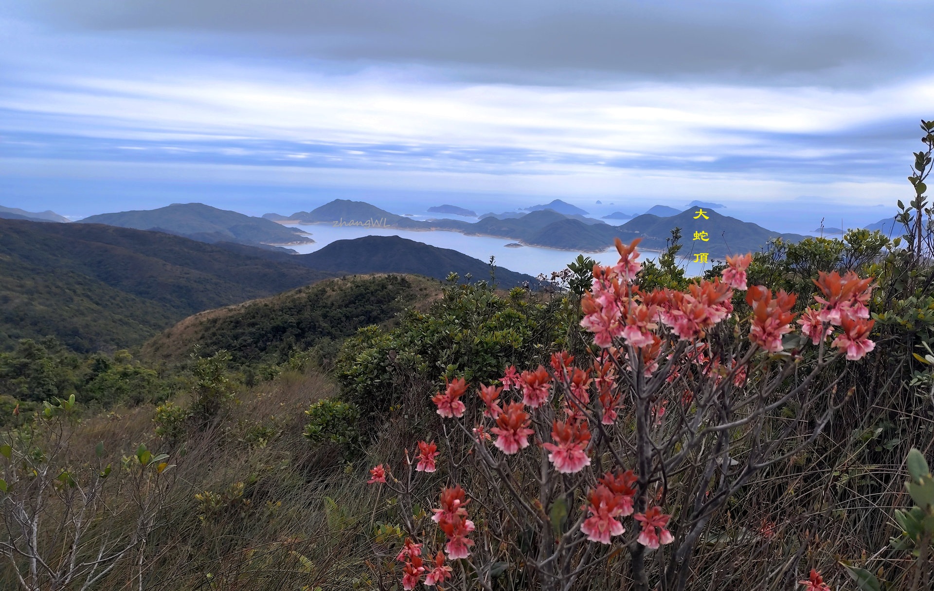 先引述當日老朽臉書記載:250131 乙巳蛇年正月初三 春花烂漫賀灵蛇 近年來每年春節例必上山賞吊鐘花,从港岛金馬倫、东涌石狮、西贡大枕蓋,三选一。今年選了後者。,蓋此路線應景見到兩個以蛇命名的山:蚺蛇尖與大蛇頂(本誌首兩圖)。也見到近來因發現恐龍化石而走紅的赤洲。麦理浩夫人巴士站→鹿湖郊游径→大枕盖(临老入花叢個把鐘)→麦径一段→北潭涌停车场。7.2公里,总爬升420m,3.3小时。獨行樂樂。