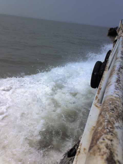 从烟台市区到砣矶岛大概三个半个小时的路程,包括一个半小时长途汽车,两个小时的渡轮。只得一提的是,胶东地区长途客车的服务很好,都很有礼貌而且服务周到。渡轮就完全不一样了,上去座位随便坐,导致我们一行拿着坐票没座位。