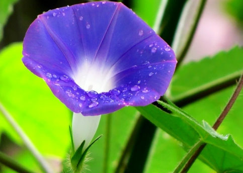 然而,這幾天的清晨,我在窗戶外的墻角下發現了幾朵零星的紫色小花,它們形狀酷似喇叭,開在草叢中,當地人稱呼它為“喇叭花”或者“牽牛花”。我俯下身子,在它面前蹲下來,仔細端詳著這一朵朵小花,它們開在角落里,向我微笑,朵朵努力面朝上,爭搶著開放,絲毫不在意沒有雨水的浸潤,依然鮮活精致,我不忍碰觸。一個小小的生命,一朵開在秋天里的小小花朵,突然讓我感到了生命力的強大。捧起這一朵微弱的小花,它是那樣纖細又是那樣強大,它的發現明媚了我的秋天,拂去了心頭的塵埃。