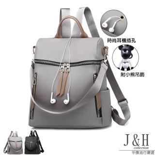 【J&H collection】時尚多功能牛津布防盜雙肩包(灰色 - 黑色 附小熊吊飾)CP值超高
