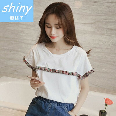 None, ~399超商免運 599折30 輸入代號 M7OJ-IPQJ-ZB18-R5YO【V8017】shiny藍格子-民族風.百搭拼接流蘇寬鬆蝙蝠袖短袖上衣。在樂天市場的shiny藍格子有最棒的商品,是您省錢的最佳選擇。