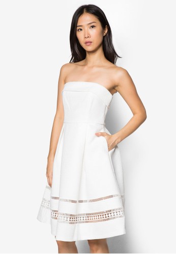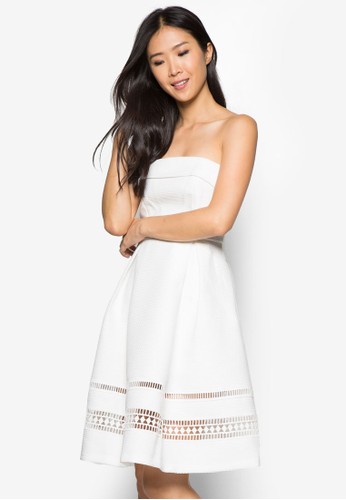 ZALORA 的Premium 蕾絲拼接露肩傘擺洋裝,採平口抹胸露肩領,配以裙擺條紋狀蕾絲拼接,是時尚經典的俏麗女神穿搭之選。 - 聚酯纖維 - 抹胸領 - 無袖 - 拉鍊設計 - 合身及寬裙擺設計 - 有內襯
