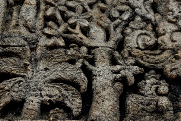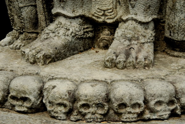 曾參觀過不少古印度廟,而這組足踩骷髏頭顱的石雕,有新鮮感。