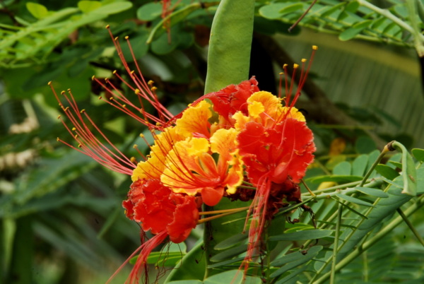 在一片斑駁的色調中,周邊的花草引人注目。