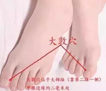 腳拇趾是一般所說“肝經”的起始處,肝經由此到生殖器、肝臟、腦、眼等依序。因此指壓“大敦”的話,能使頭腦清晰、眼睛明亮。