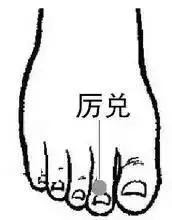 厲兌穴在第二腳趾趾甲旁,靠近第三腳趾側,按摩該穴,有清熱利濕、通調腸胃的功效。用大拇指,指端點壓腳趾上的厲兌穴,力度可慢慢增大,以有疼痛感覺就可以了。