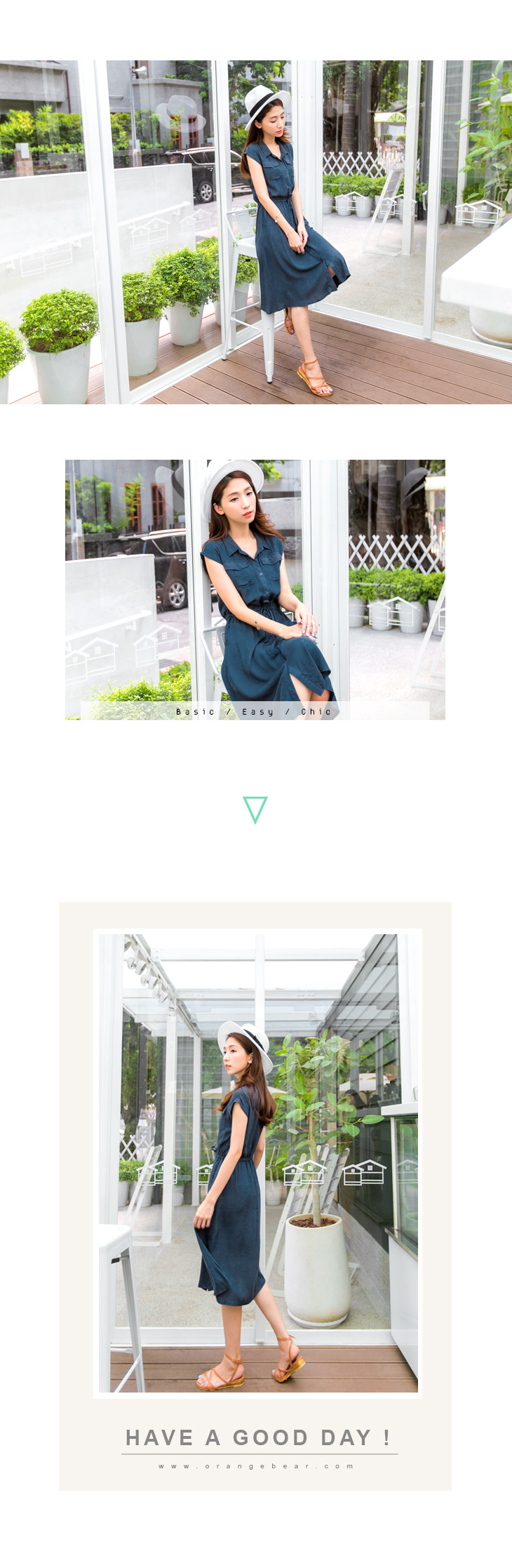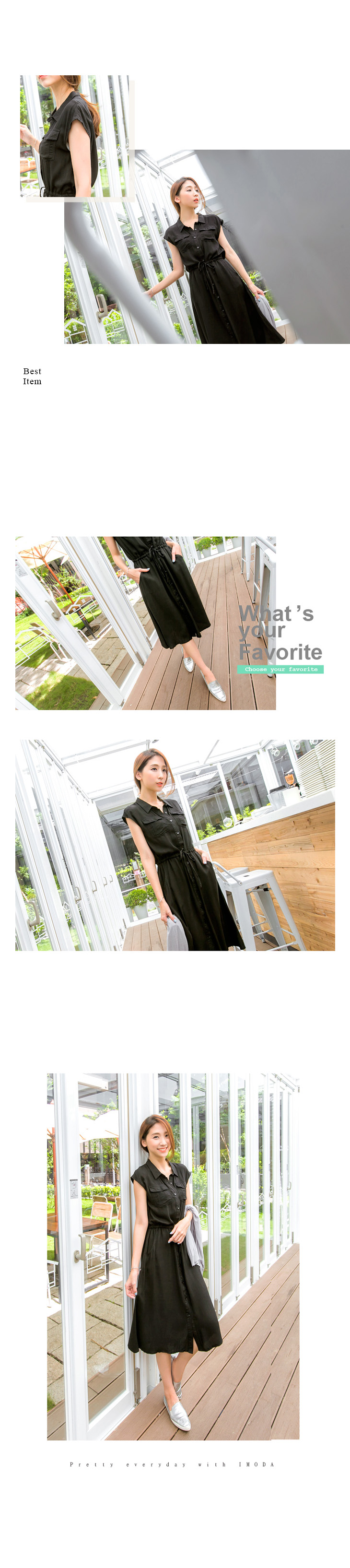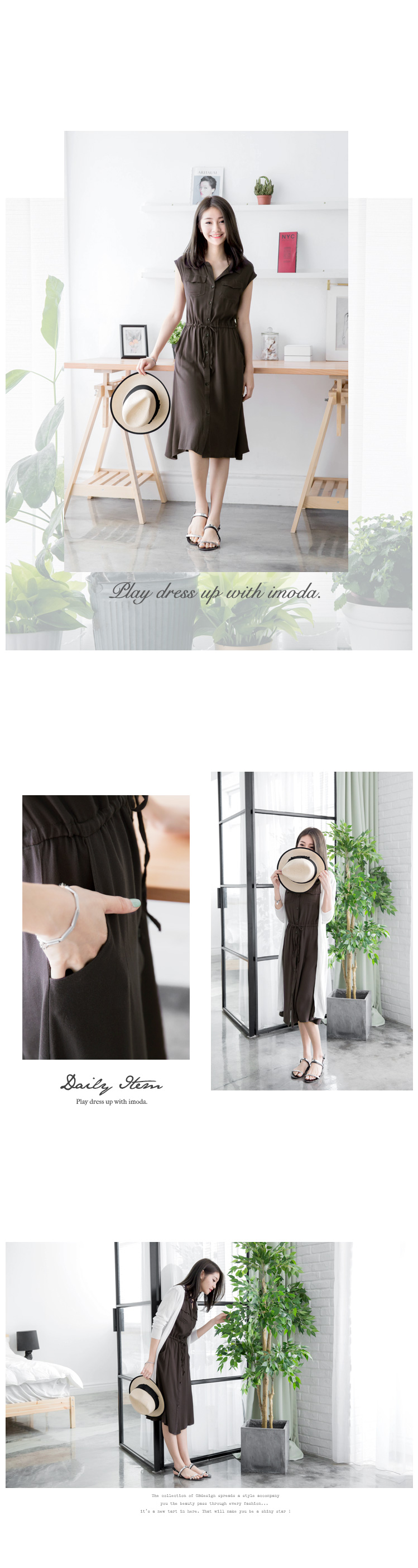 0620新品 知性悠閒~純色排釦造型抽繩連身洋裝.2色