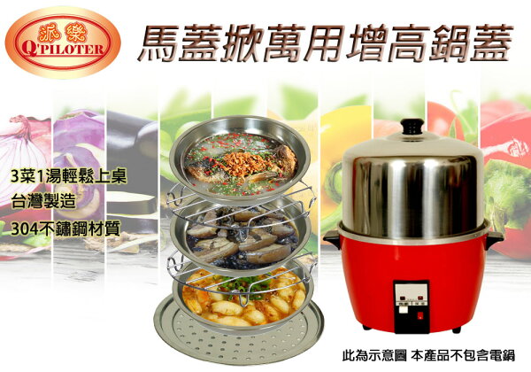 馬蓋掀 蓋神 奇-蓋好掀 真神萬用鍋蓋組-3蒸盤+2蒸架+大萬用蒸盤+大鍋蓋-適6-15人份電鍋