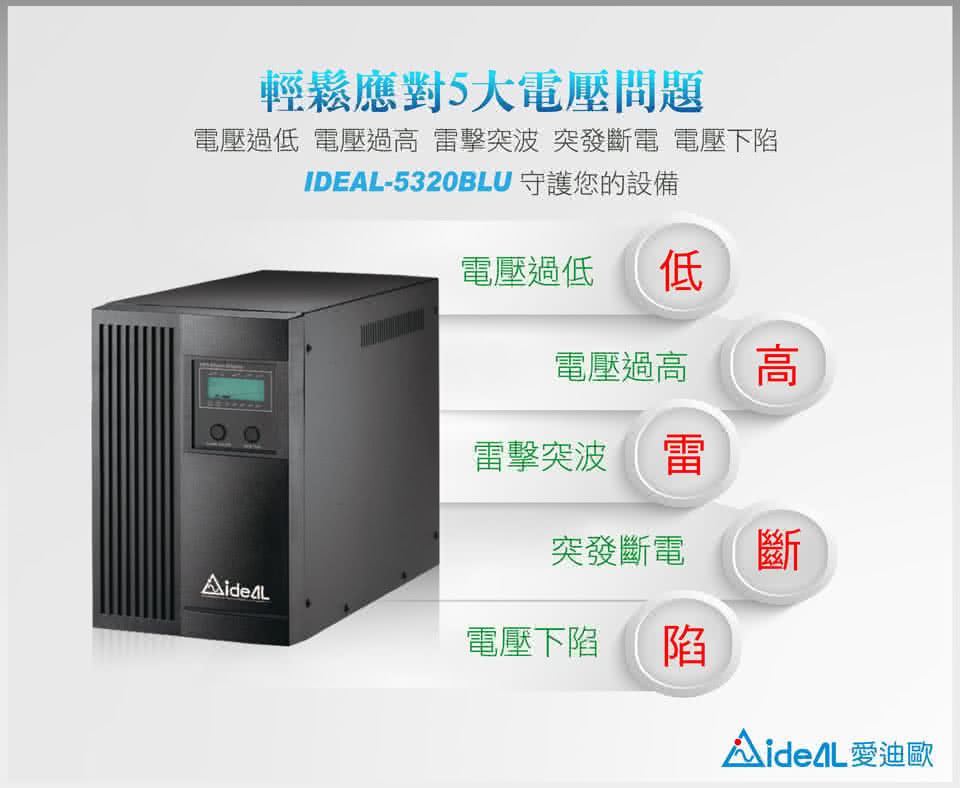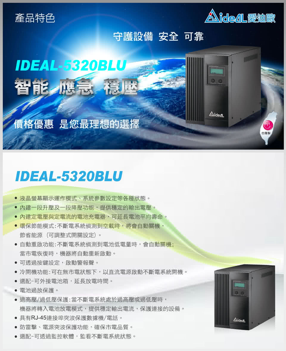 【愛迪歐IDEAL】IDEAL-5320BLU(在線互動式UPS 2000VA)