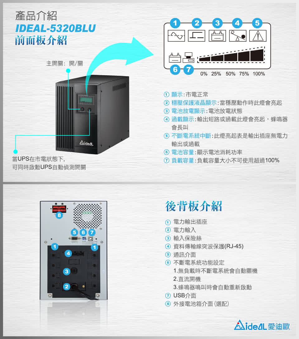 4432245 【愛迪歐IDEAL】IDEAL-5320BLU(在線互動式UPS 2000VA) 4432245