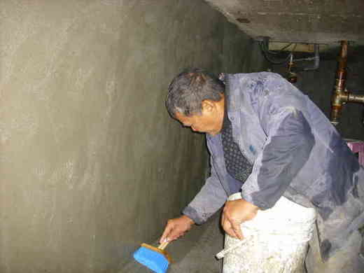 1. 把池體內表面清理乾淨,充分潤濕但無明水,分兩次粉刷