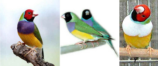 羽色分明豔麗的七彩文鳥,其分門別類的方法為羽色之不同,現存約分為40幾種,一般較為常見的為紅頭七彩文鳥,最罕見的為黑頭七彩文鳥。