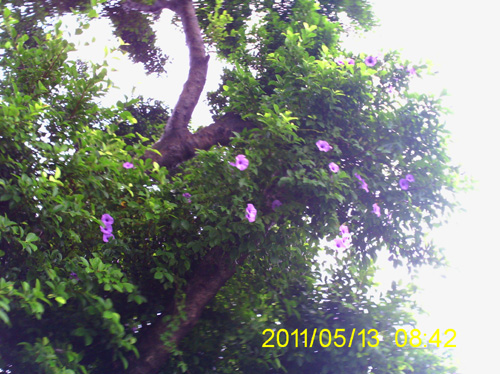 綠樹興高吹喇叭,翠葉甘霖嫩滑亮。
