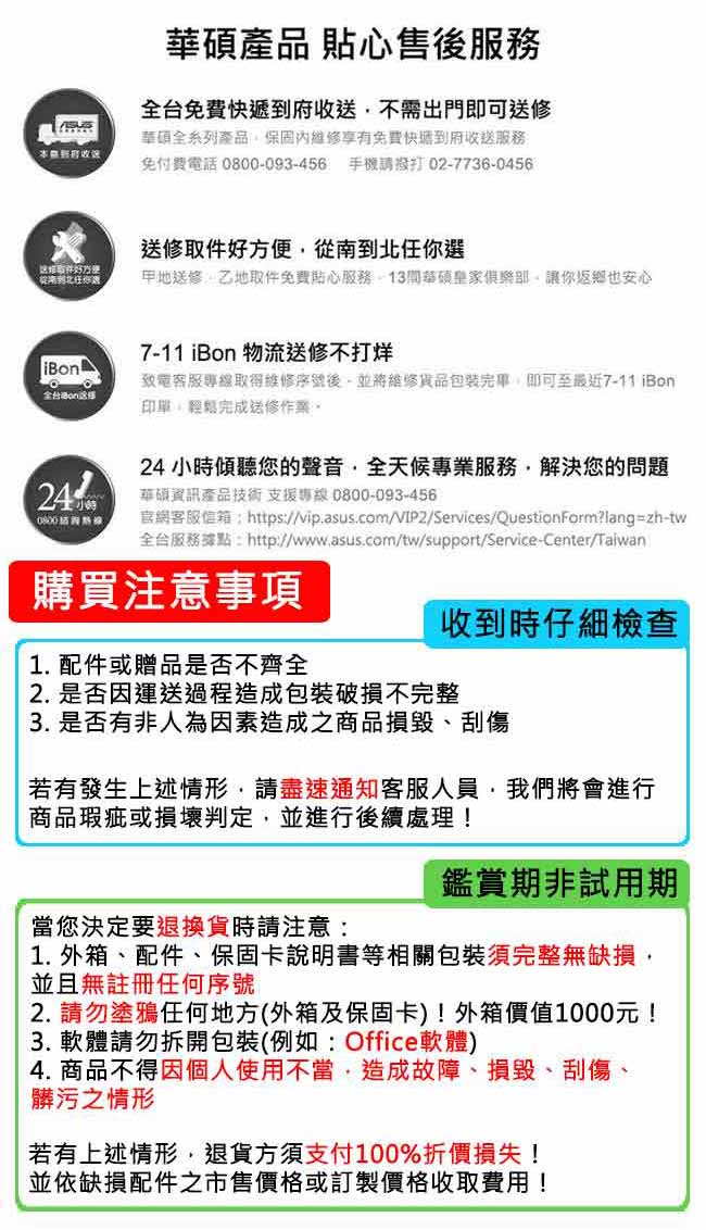 3.鑑賞期非試用期,鑑賞期內請勿試用,如需退貨請確認外盒、配件、包材、說明書、隨附物品完整無缺損