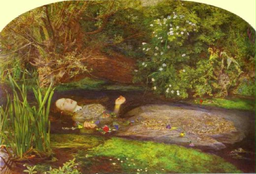 (雖然Ophelia畫的主題是她發瘋投水自盡後的場景 ,