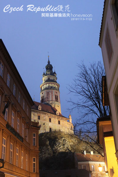 下著雨的庫倫諾夫,我們在早晨迎接霧氣的城堡,新鮮的空氣中帶有水份,出國旅行的人不管天氣如何,都會因為愉快的心情而視若無賭,庫倫諾夫的石板地讓四輪行裏箱,看起來有點笨重。