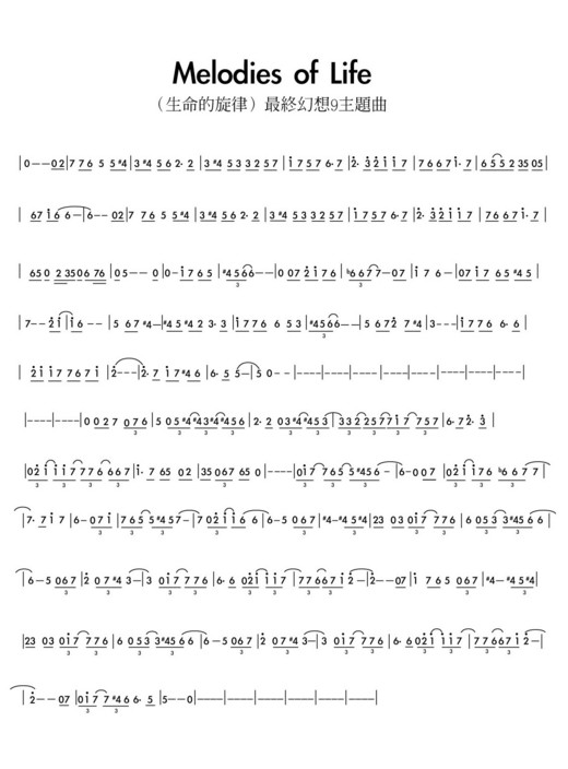 Melodies of Life陶笛簡譜